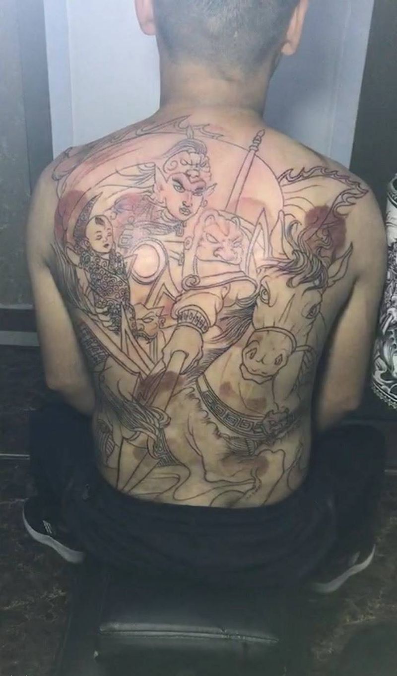 • 黑灰满背纹身图案