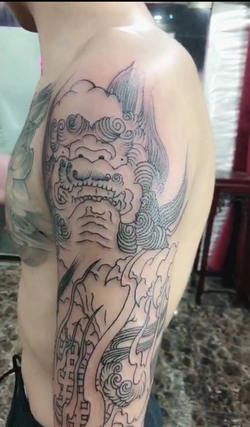 当前位置: 首页 >江苏省宿迁市纹身店-玄龙堂刺青纹身图案>花臂初步勾线纹身图片