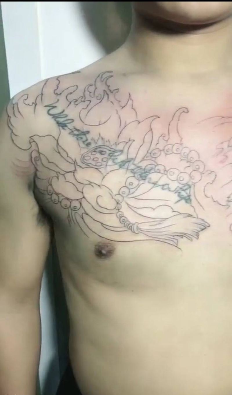当前位置: 首页 >江苏省宿迁市纹身店-玄龙堂刺青纹身图案>花胸初步勾线纹身图片