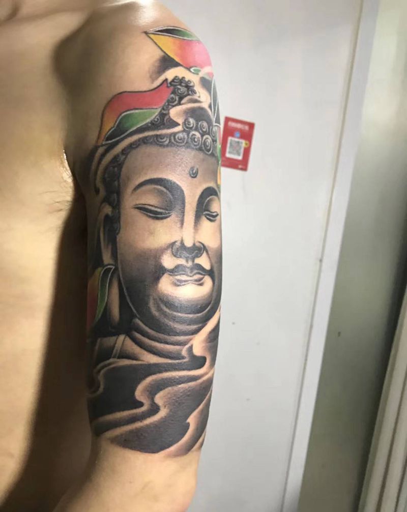大臂佛纹身图片_手臂纹身图案