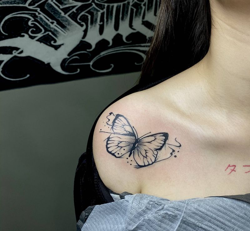 • 纹身吧推荐的披肩图腾半胛纹身图案作品展示