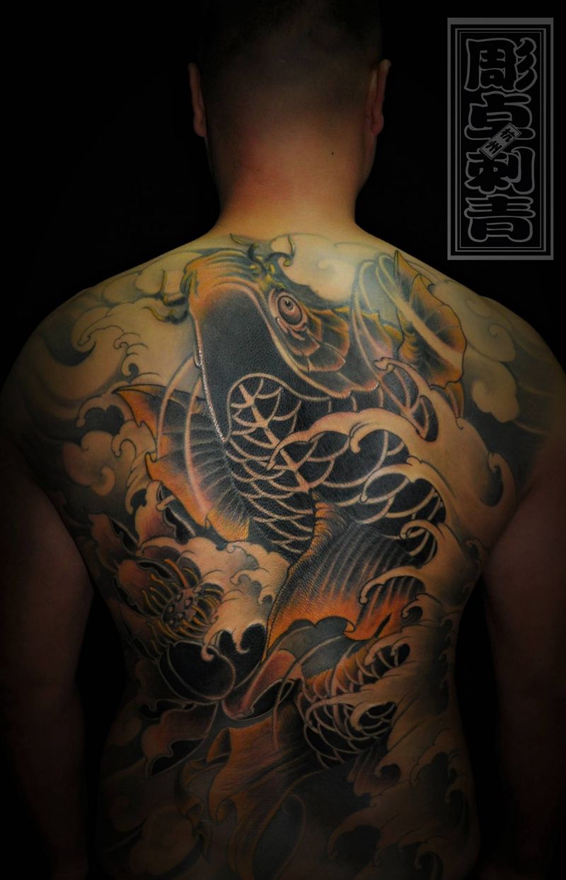 黑灰满背纹身图案