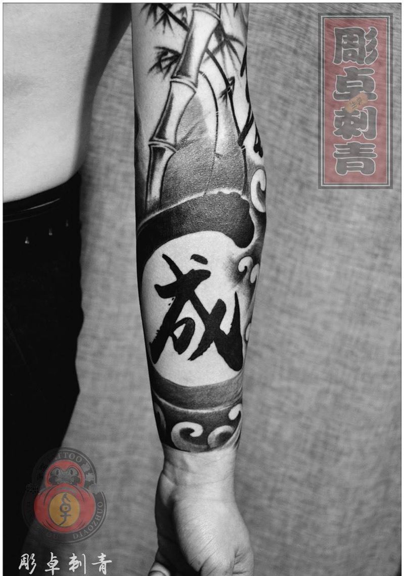 当前位置: 首页 >浙江省杭州市纹身店-雕卓刺青纹身图案>传统书法水墨花臂纹身图片_成品花臂原创毛笔书法传统手臂纹身图案