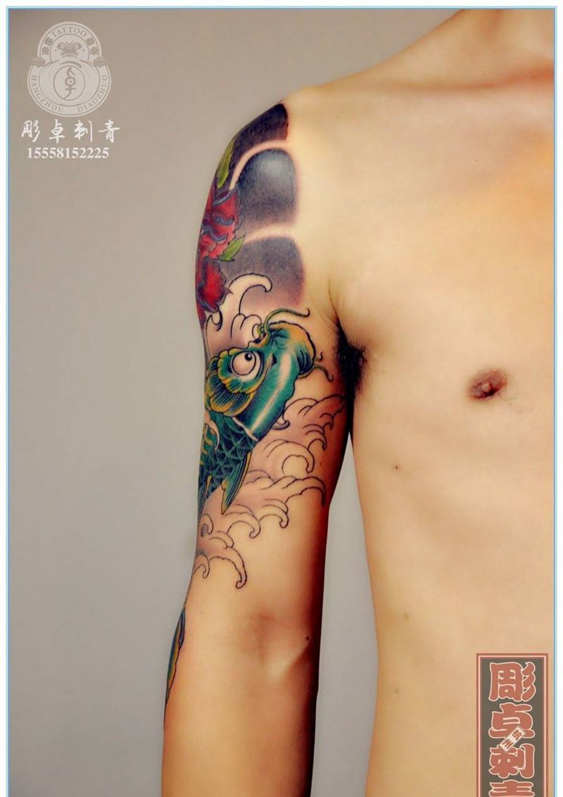 修改 大臂鲤鱼纹身图片_成品传统鲤鱼修改遮盖杭州纹身图案