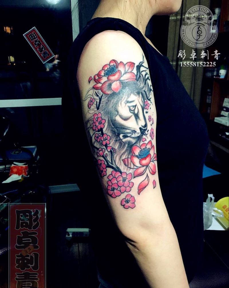 当前位置: 首页 >浙江省杭州市纹身店-雕卓刺青纹身图案>大臂狮子座纹身图片_成品手臂欧美原创狮子水墨杭州纹身图案