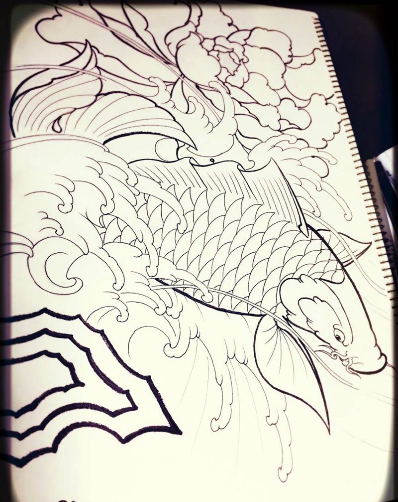 当前位置: 首页 >浙江省杭州市纹身店-雕卓刺青纹身图案>鲤鱼包小腿纹身图片_成品手稿腿部传统牡丹鲤鱼动物纹身图案