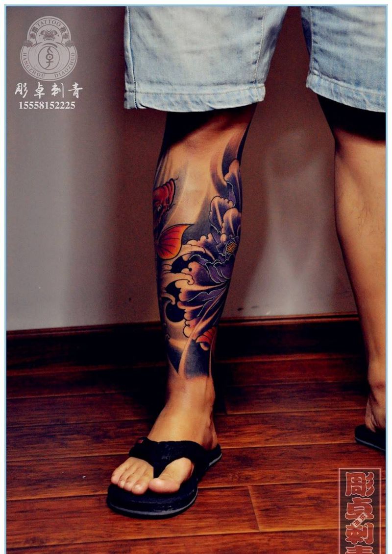 当前位置: 首页 >浙江省杭州市纹身店-雕卓刺青纹身图案>鲤鱼包小腿纹身图片_成品手稿腿部传统牡丹鲤鱼动物纹身图案