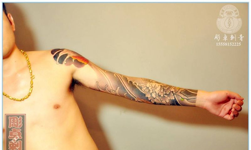 当前位置: 首页 >浙江省杭州市纹身店-雕卓刺青纹身图案>般若鲤鱼花臂纹身图片_成品手臂传统原创花臂般若 鲤鱼杭州纹身图案