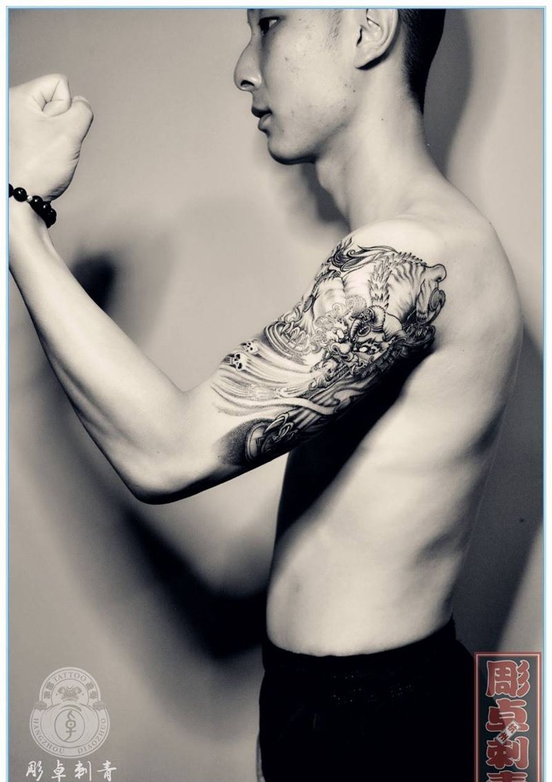 当前位置: 首页 >浙江省杭州市纹身店-雕卓刺青纹身图案>大臂貔貅纹身图片_成品手臂传统貔貅鬼神纹身图案