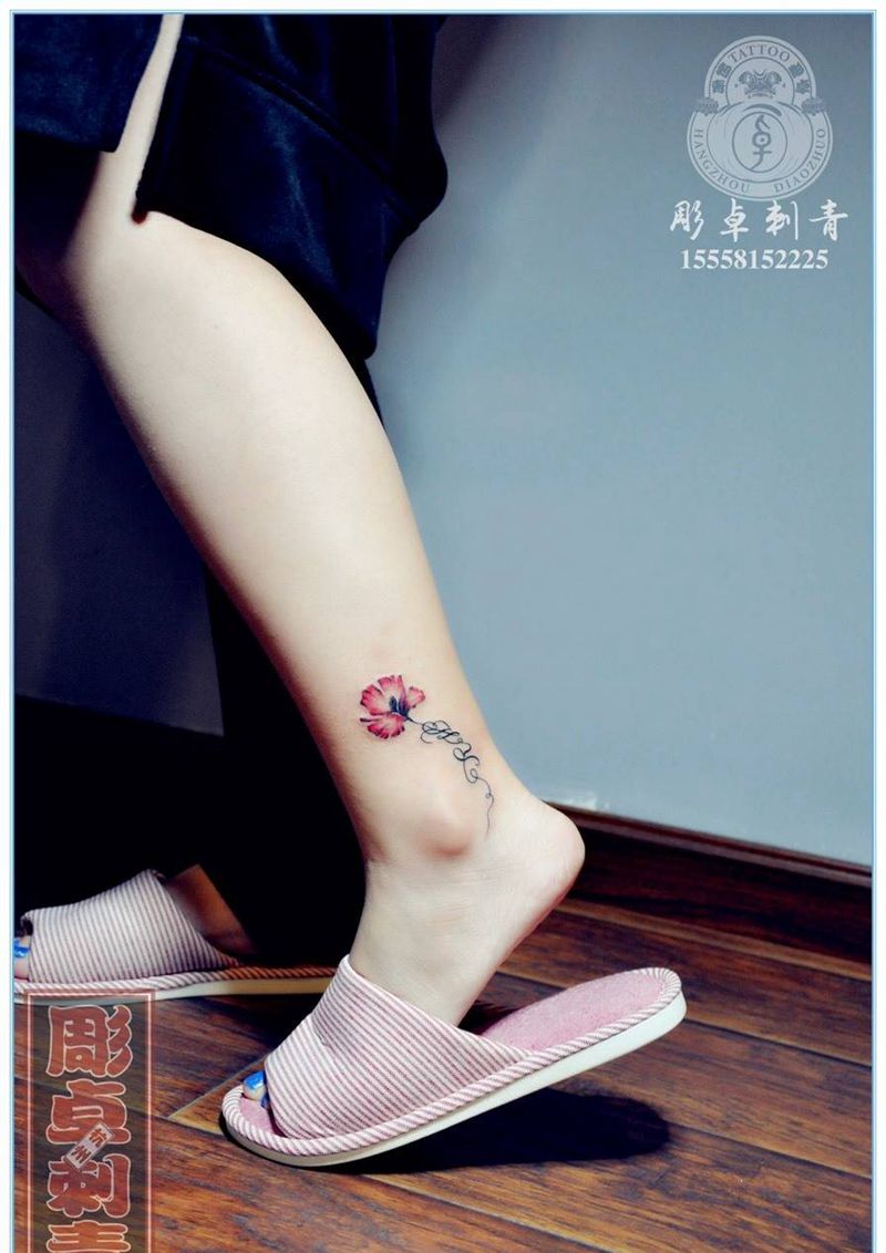 水墨花&英文纹身图片_成品脚部手臂欧美国画清新静物字符杭州英文纹身图案