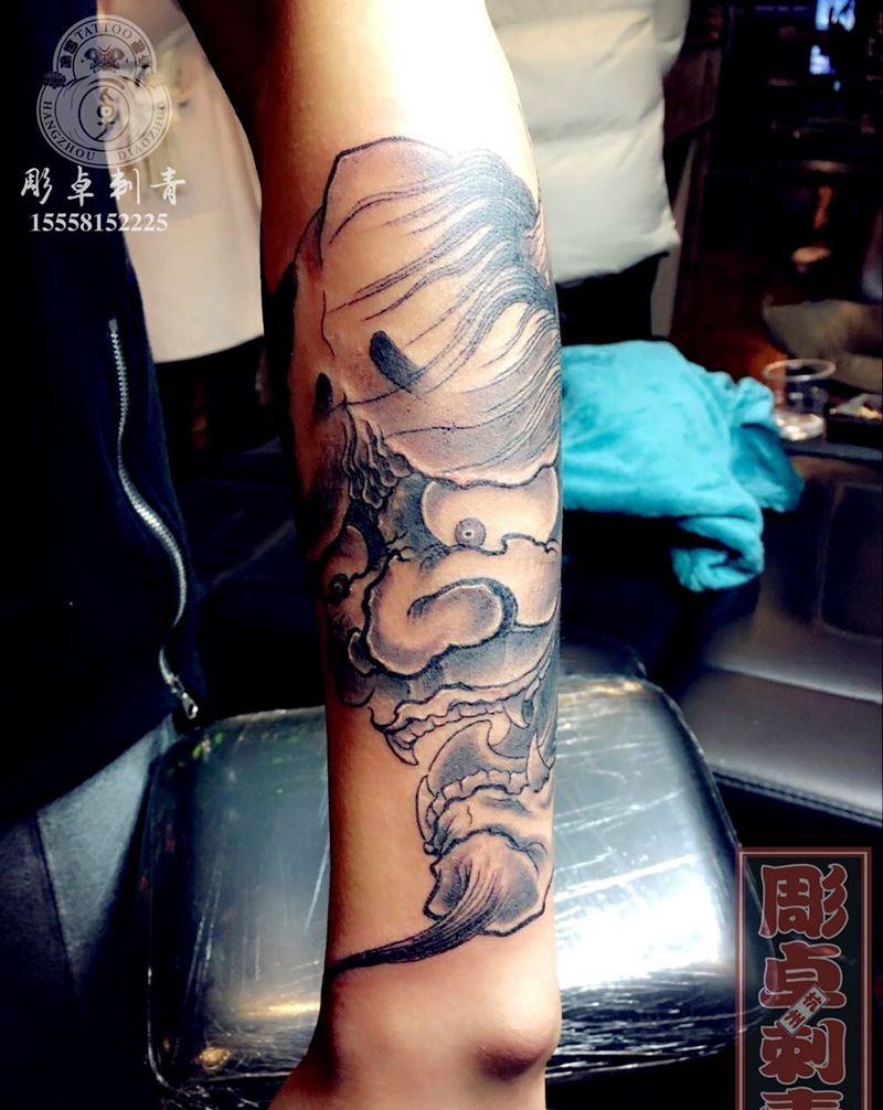 小臂般若纹身图片_成品手臂传统鬼神般若杭州纹身图案