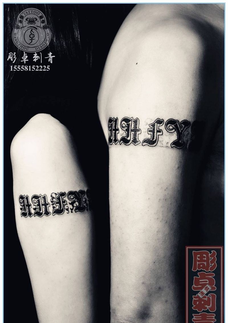 当前位置: 首页 >浙江省杭州市纹身店-雕卓刺青纹身图案>哥特字体情侣英文纹身图片_成品手臂欧美字符情侣英文杭州纹身图案