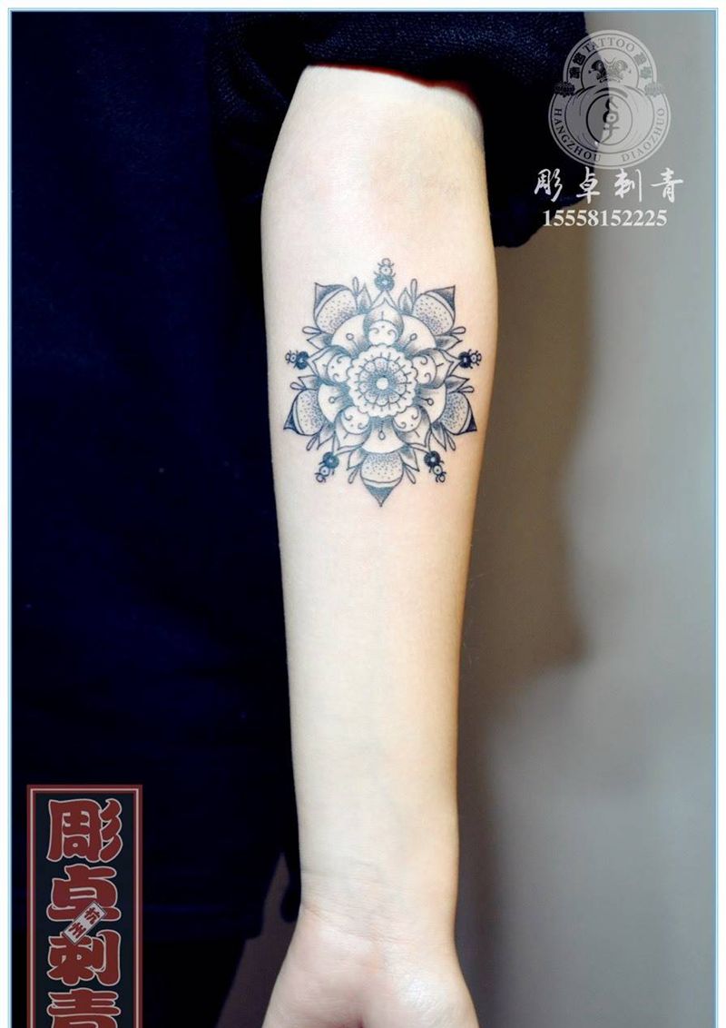 梵花纹身图片_成品手臂欧美图腾梵花线条杭州纹身图案