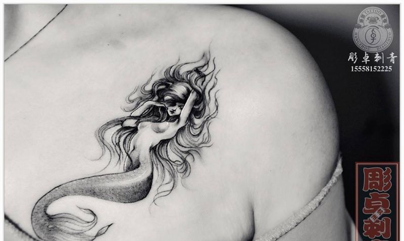 当前位置: 首页 >浙江省杭州市纹身店-雕卓刺青纹身图案>锁骨美人鱼纹身图片_成品肩部胸部清新锁骨杭州美人鱼人物欧美纹身图案