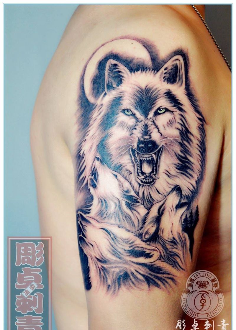 当前位置: 首页 >浙江省杭州市纹身店-雕卓刺青纹身图案>狼纹身图片_成品手臂欧美写实动物杭州狼纹身图案