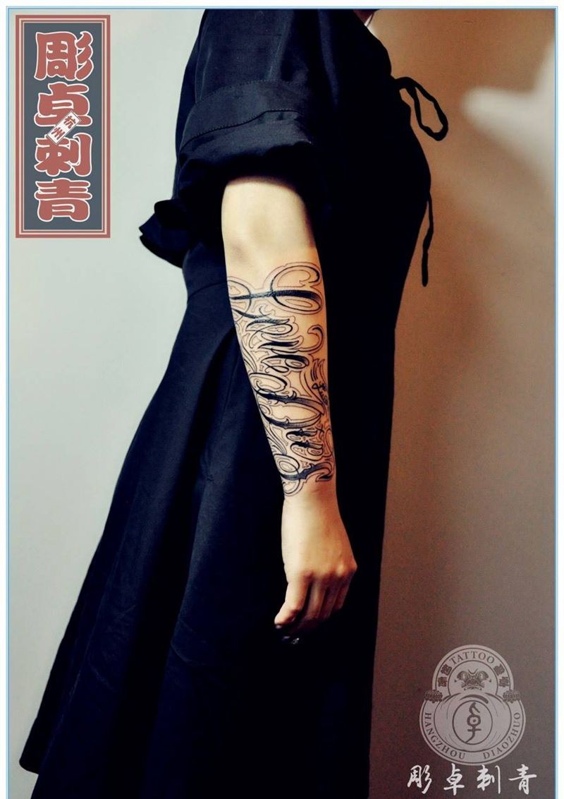 当前位置: 首页 >浙江省杭州市纹身店-雕卓刺青纹身图案>小臂花体英文纹身图片_成品手臂欧美字符花体英文小臂杭州英文纹身图案
