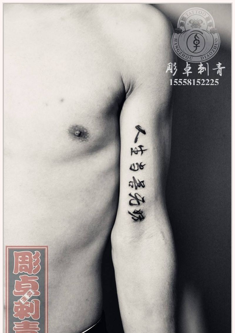 当前位置: 首页 >浙江省杭州市纹身店-雕卓刺青纹身图案>大臂内书法纹身图片_成品手臂传统字符毛笔书法杭州纹身图案