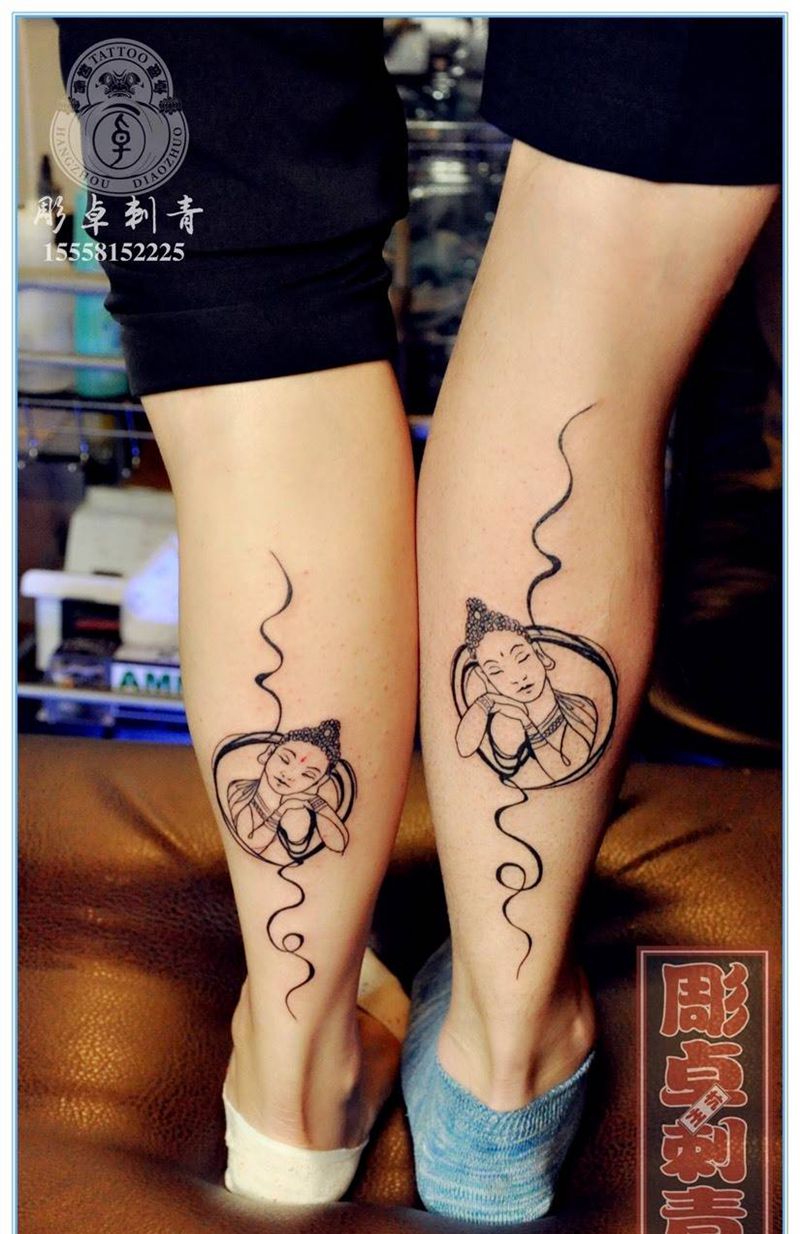 情侣纹身纹身图片_成品腿部传统清新宗教小腿神佛杭州纹身图案