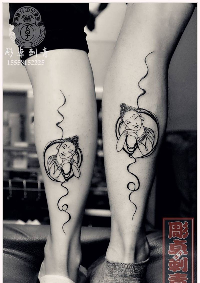 情侣纹身纹身图片_成品腿部传统清新宗教小腿神佛杭州纹身图案