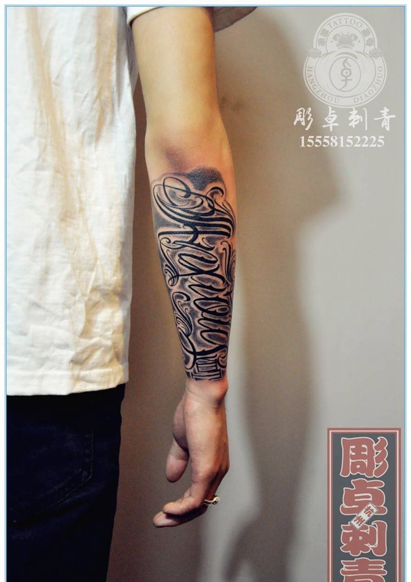 小臂花体英文纹身图片_成品手臂欧美字符原创花体英文小臂杭州纹身图案