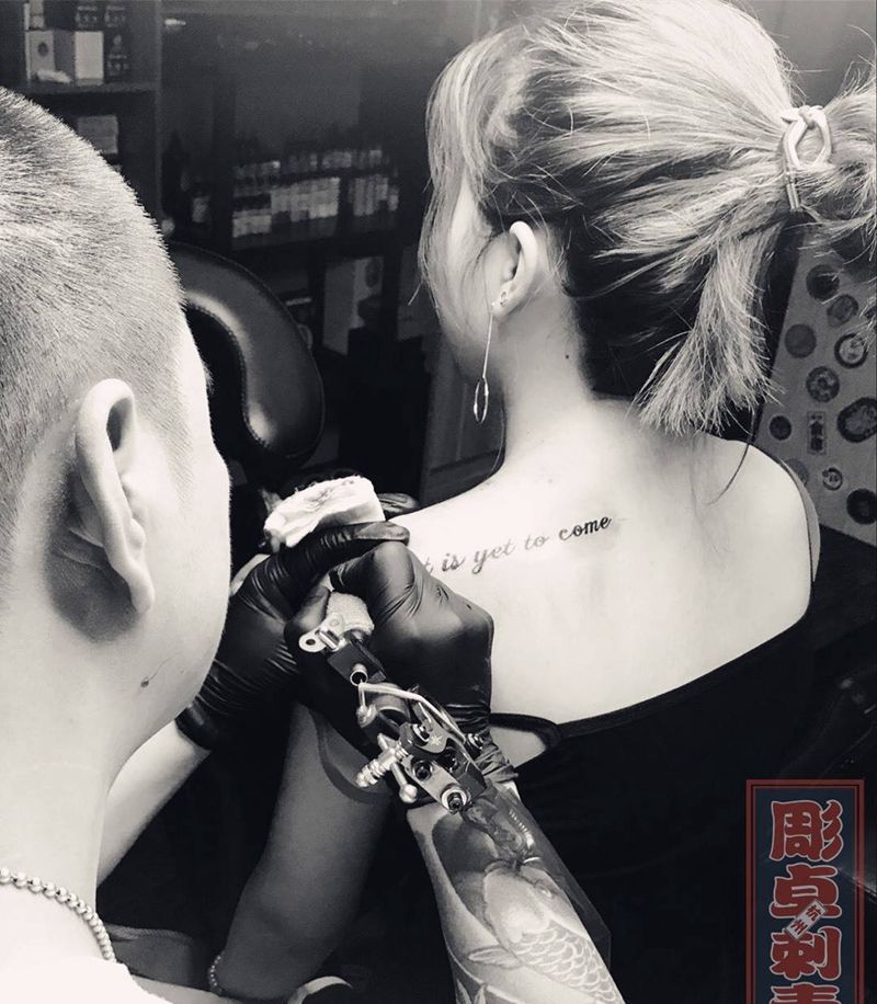 肩上英文纹身图片_成品肩部清新字符英文杭州纹身图案
