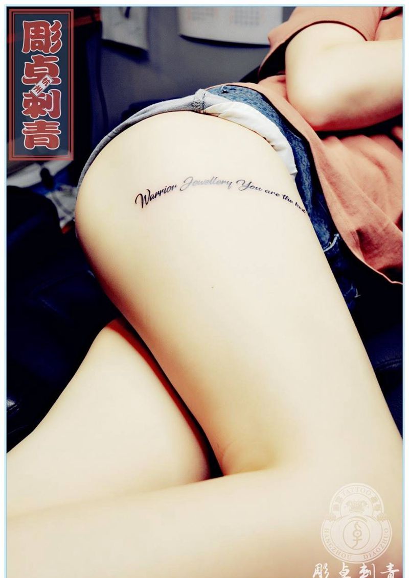 大腿英文纹身图片_成品腿部清新字符杭州性感英文纹身图案