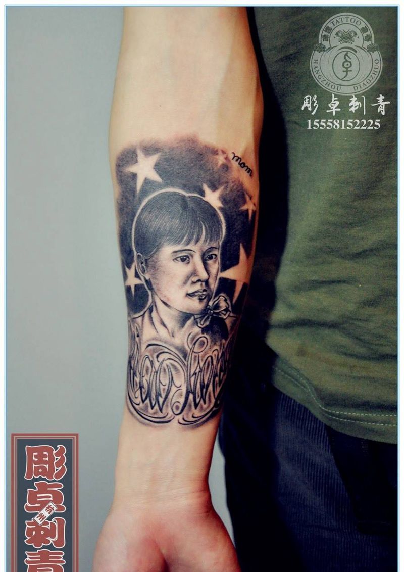 当前位置: 首页 >浙江省杭州市纹身店-雕卓刺青纹身图案>母亲纹身图片_肖像写实杭州人物肖像手臂成品原创纹身图案