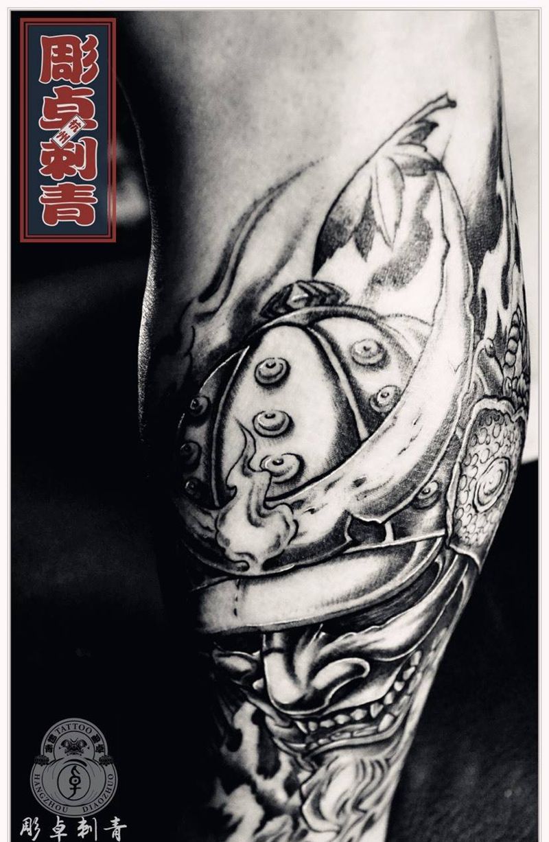 当前位置: 首页 >浙江省杭州市纹身店-雕卓刺青纹身图案>小腿鬼武士纹身图片_成品腿部传统鬼神杭州鬼武士日本武士纹身图案
