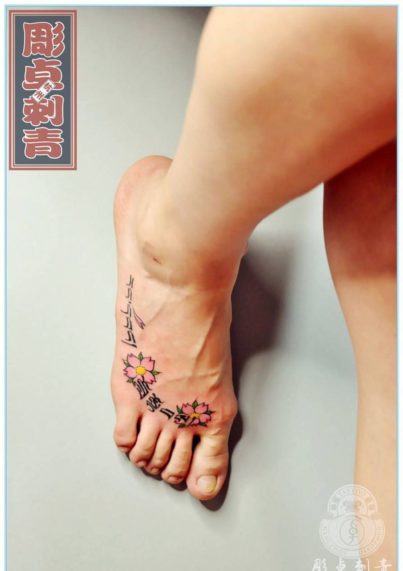 当前位置: 首页 >浙江省杭州市纹身店-雕卓刺青纹身图案>脚背梵文樱花纹身图片_成品脚部清新字符植物杭州花梵文藏文樱花纹身图案