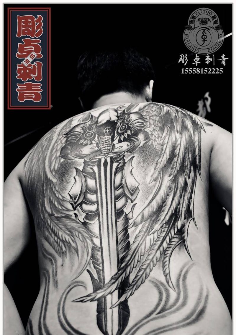 当前位置: 首页 >浙江省杭州市纹身店-雕卓刺青纹身图案>满背大天使修改添加纹身图片_成品背部欧美原创大天使杭州满背修改遮盖纹身图案