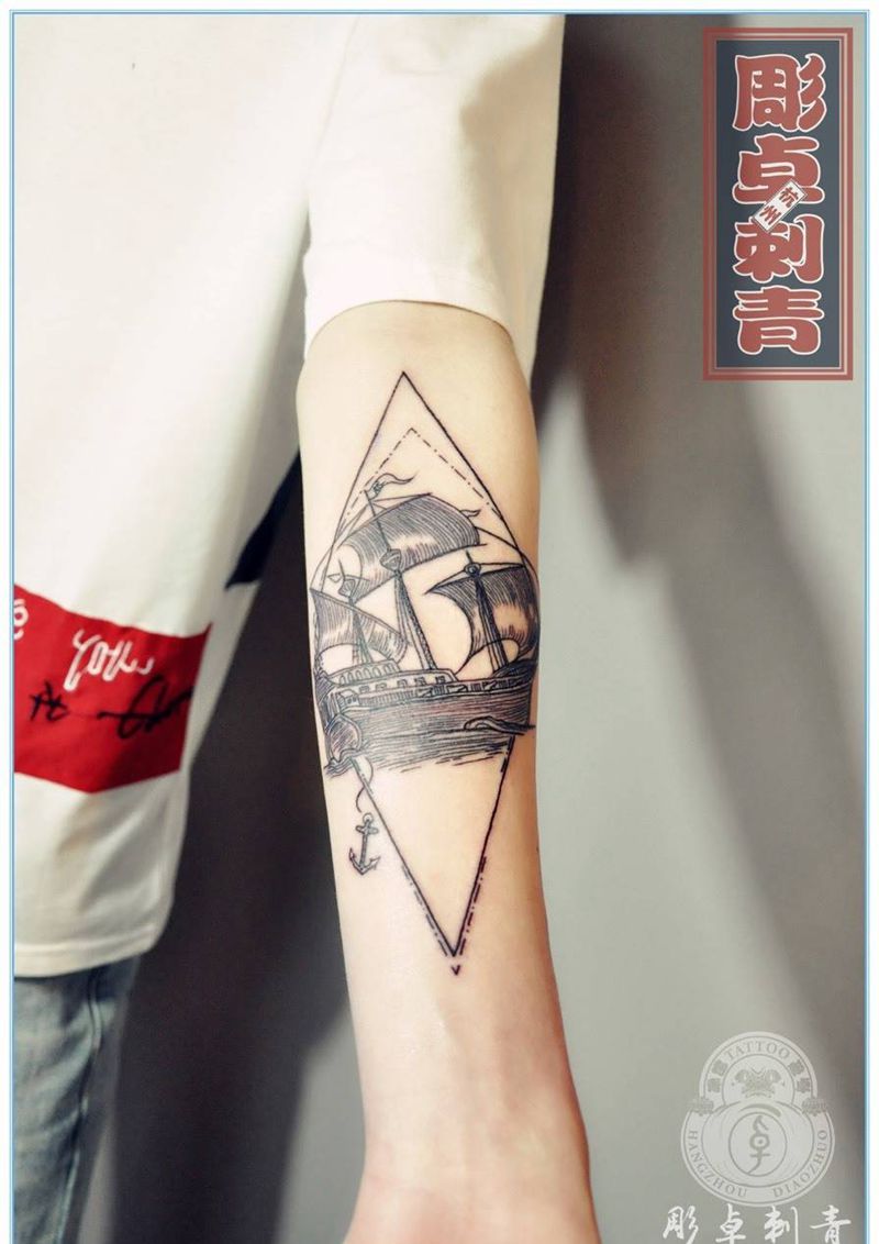 当前位置: 首页 >浙江省杭州市纹身店-雕卓刺青纹身图案>大帆船纹身图片_成品手臂清新几何线条帆船杭州纹身图案