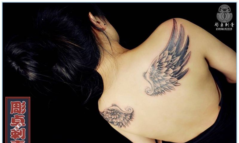 当前位置: 首页 >浙江省杭州市纹身店-雕卓刺青纹身图案>翅膀纹身图片_成品背部欧美清新写实翅膀纹身图案