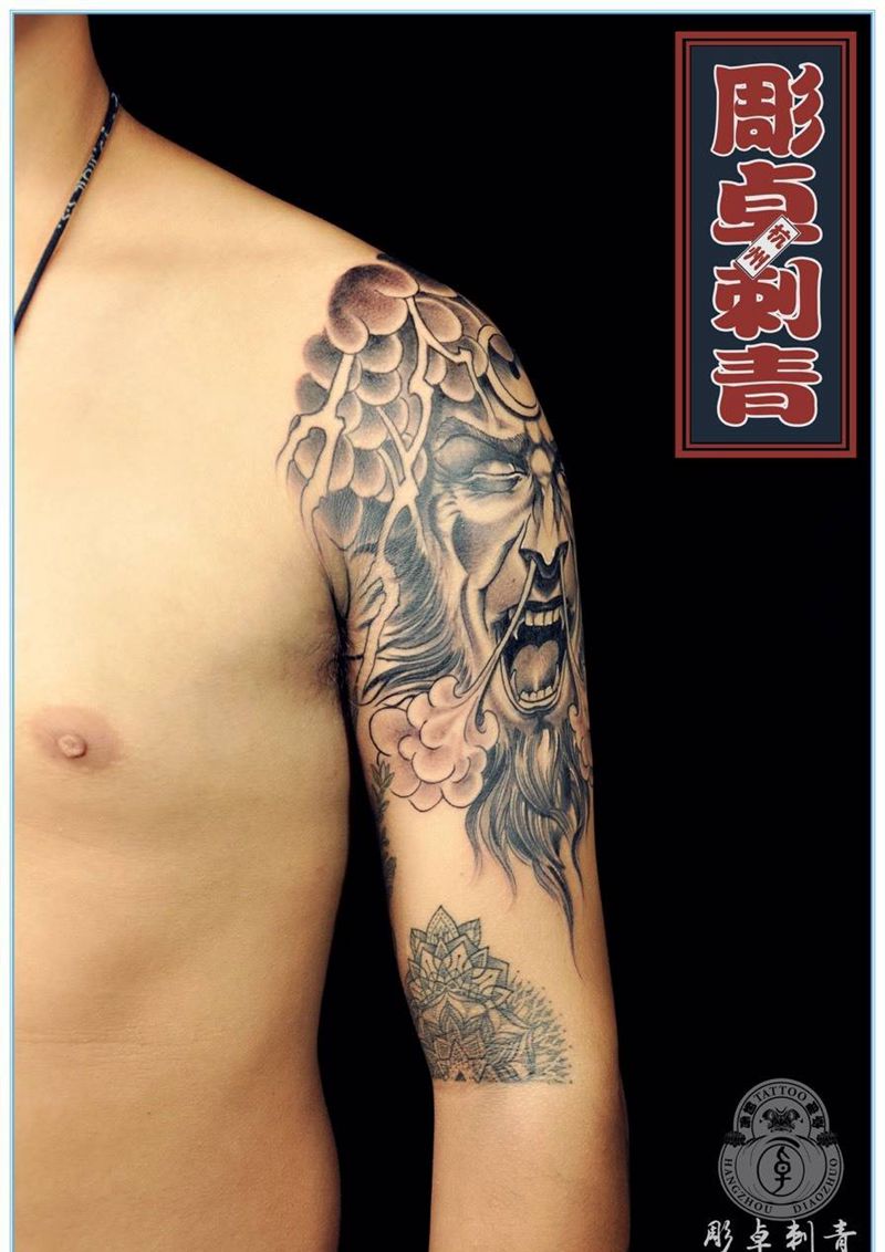 大臂添加纹身图片_成品手臂欧美宗教鬼神纹身图案