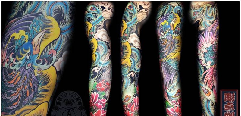 凤凰花臂纹身图片_成品手臂传统动物鬼神原创花臂凤凰纹身图案