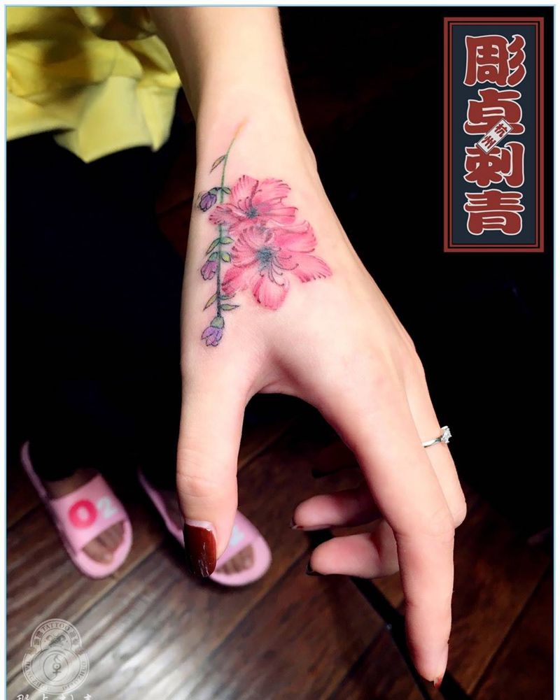 当前位置: 首页 >浙江省杭州市纹身店-雕卓刺青纹身图案>遮盖纹身图片_成品手部清新植物素花修改遮盖花虎口纹身图案