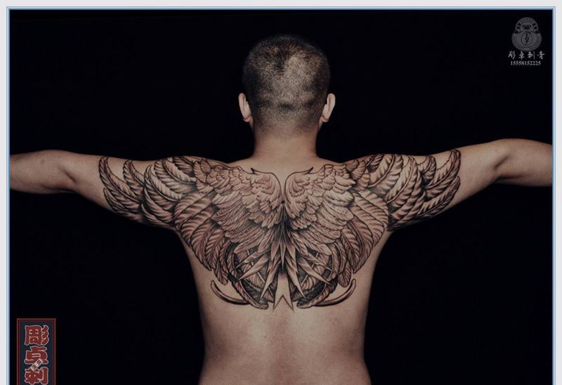 当前位置: 首页 >浙江省杭州市纹身店-雕卓刺青纹身图案>翅膀纹身图片_成品背部欧美翅膀纹身图案