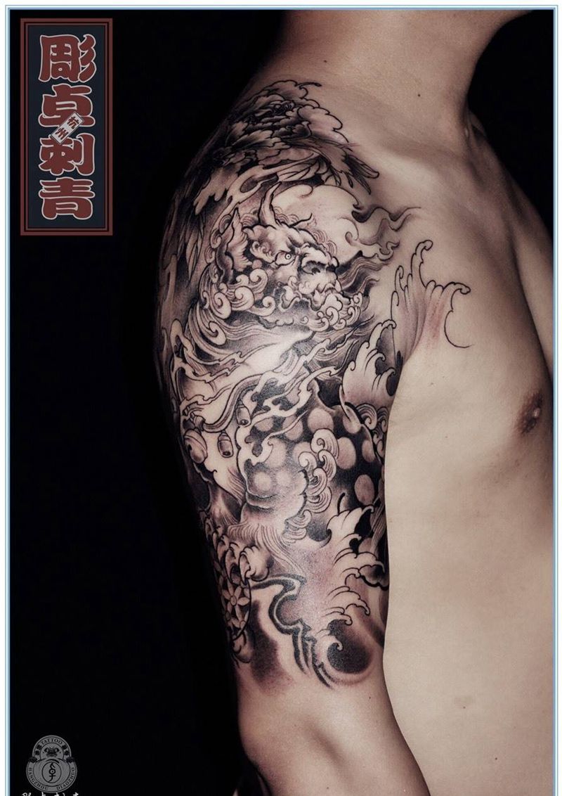 当前位置: 首页 >浙江省杭州市纹身店-雕卓刺青纹身图案>唐狮盖疤纹身图片_成品手臂传统动物修改遮盖唐狮纹身图案