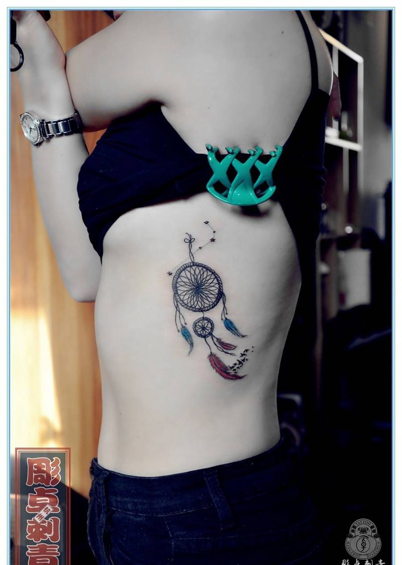 当前位置: 首页 >浙江省杭州市纹身店-雕卓刺青纹身图案>捕梦网纹身图片_成品腰部清新欧美侧肋捕梦网纹身图案