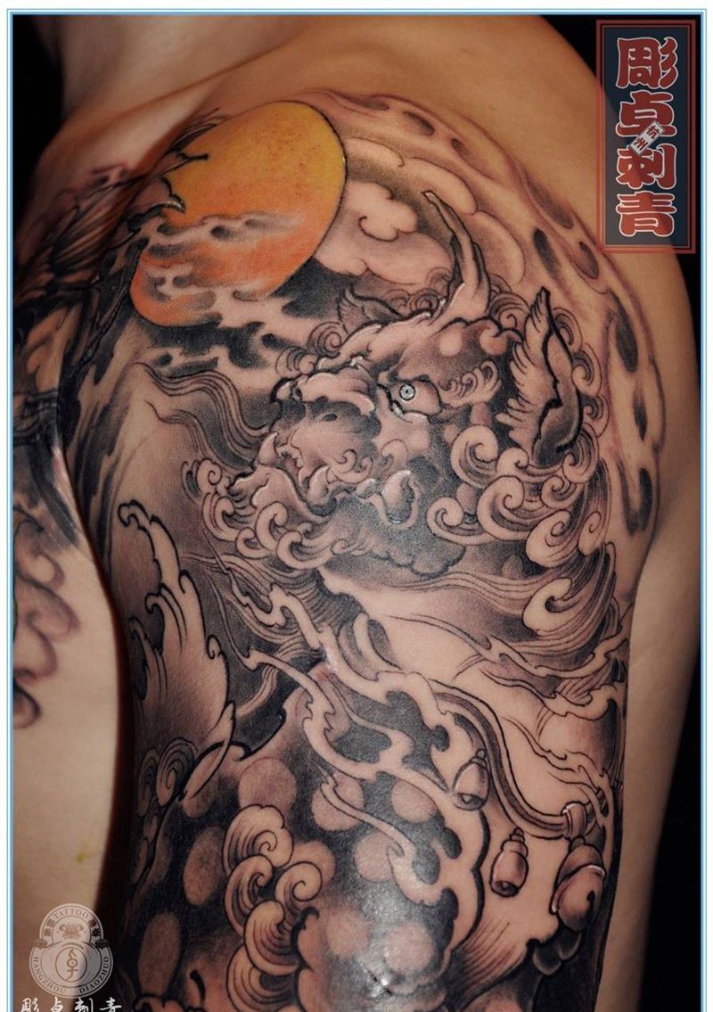 当前位置: 首页 >浙江省杭州市纹身店-雕卓刺青纹身图案>仙鹤唐狮半甲纹身图片_成品手臂胸部传统动物仙鹤唐狮半甲纹身图案