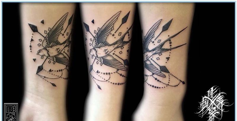 当前位置: 首页 >浙江省杭州市纹身店-雕卓刺青纹身图案>手腕小清新燕子纹身图片_手部手臂几何小清新燕子纹身图案