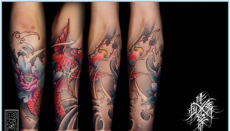 当前位置: 首页 >浙江省杭州市纹身店-雕卓刺青纹身图案>鲤鱼包小臂纹身图片_手臂新传统鲤鱼牡丹包小臂纹身图案