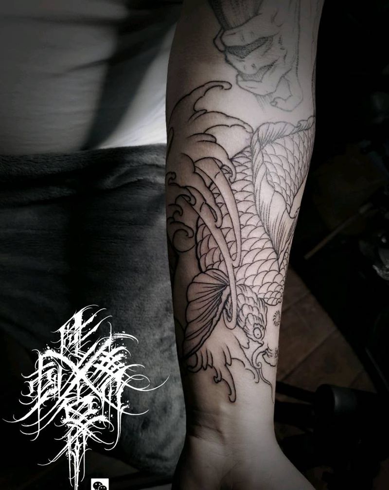 鲤鱼未完纹身图片_手臂新传统纹身图案