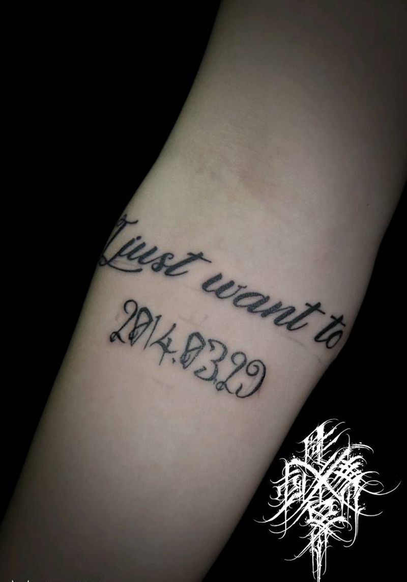 当前位置: 首页 >浙江省杭州市纹身店-雕卓刺青纹身图案>英文手环纹身图片_手臂花体字纹身图案