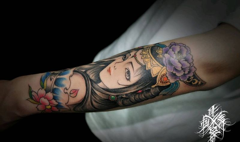 当前位置: 首页 >浙江省杭州市纹身店-雕卓刺青纹身图案>艺妓纹身图片_手臂新传统艺妓纹身图案