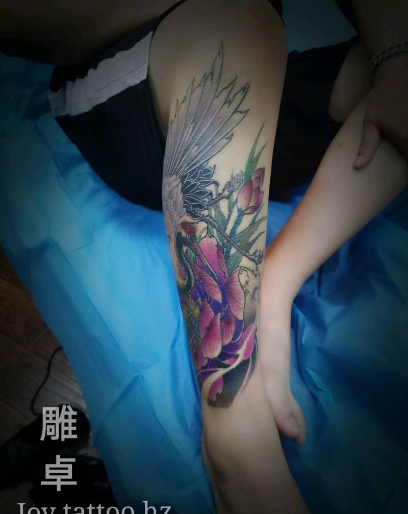 当前位置: 首页 >浙江省杭州市纹身店-雕卓刺青纹身图案>小腿鹤纹身图片_腿部新传统鹤纹身图案