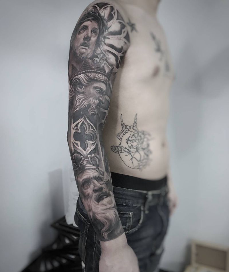 当前位置: 首页 >浙江省杭州市纹身店-刺刻工廠纹身图案>石膏像花臂纹身图片_手臂欧美写实纹身图案