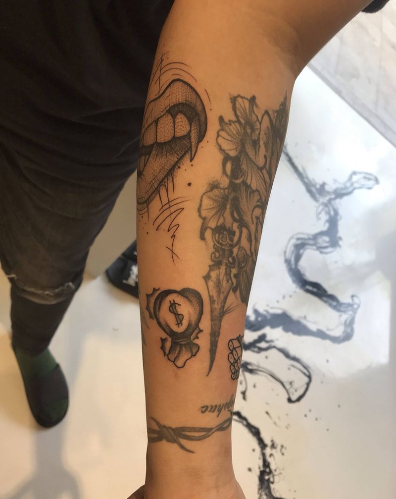 当前位置: 首页 >浙江省杭州市纹身店-杭州風素刺青纹身图案>钱袋纹身图片_手臂纹身图案