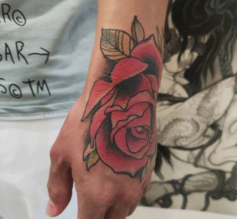 当前位置: 首页 >浙江省杭州市纹身店-杭州風素刺青纹身图案>手背玫瑰纹身图片_手部Old SchoolNew School玫瑰纹身图案
