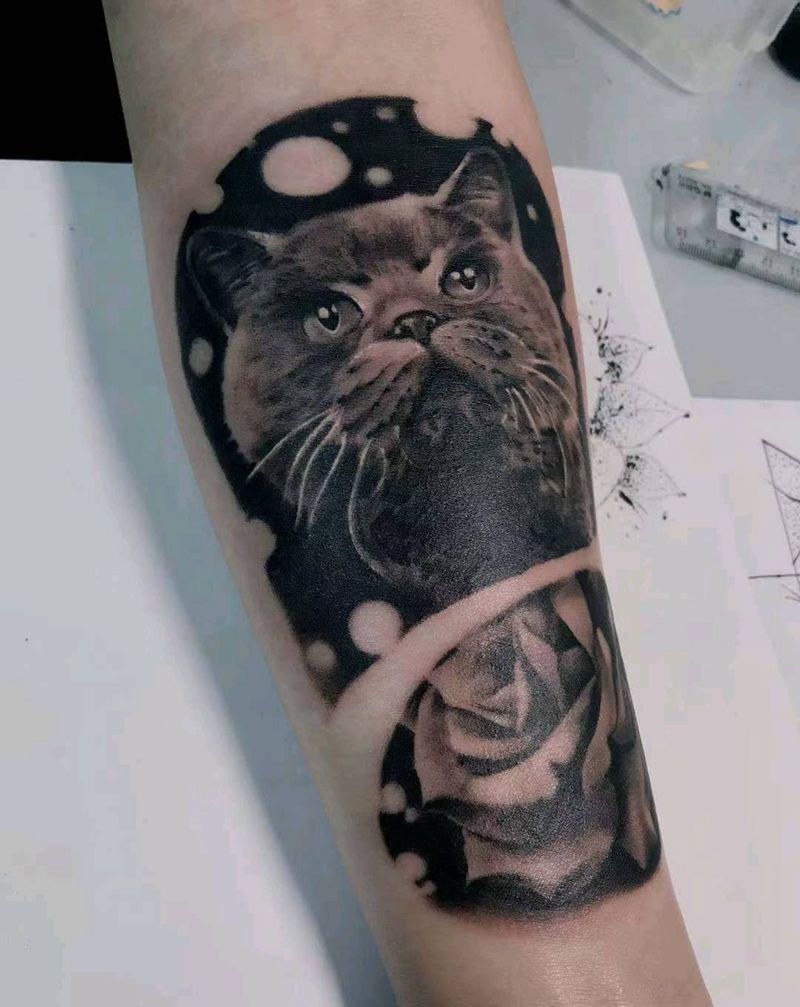 客人带的猫咪纹身图片_欧美写实纹身图案