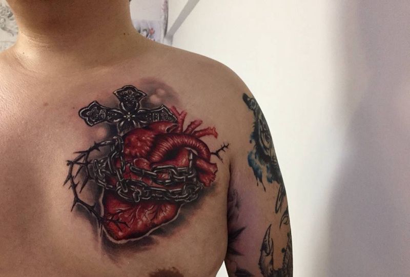 写实心脏铁链-Lisa作品纹身图片_成品胸部欧美写实宗教原创静物欧美写实纹身图案